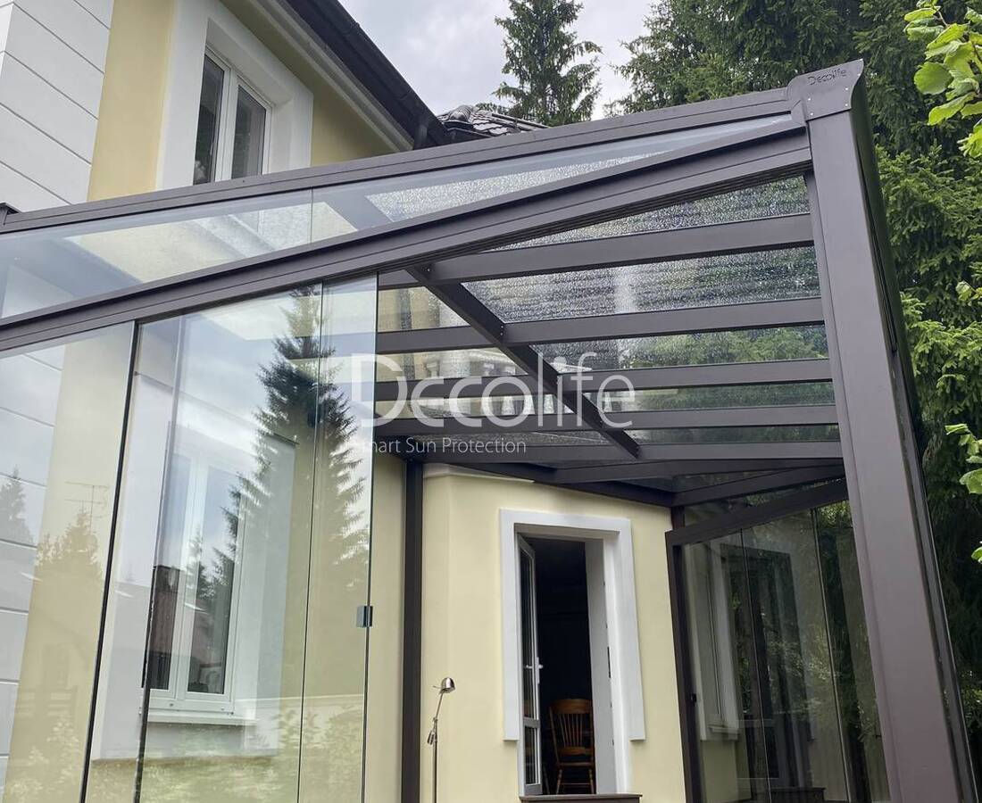 Пергола тентовая Decolife Project Light + Подъемное остекление W500 - реализовано партнером "ООО Люкс Террас" - Московская обл.